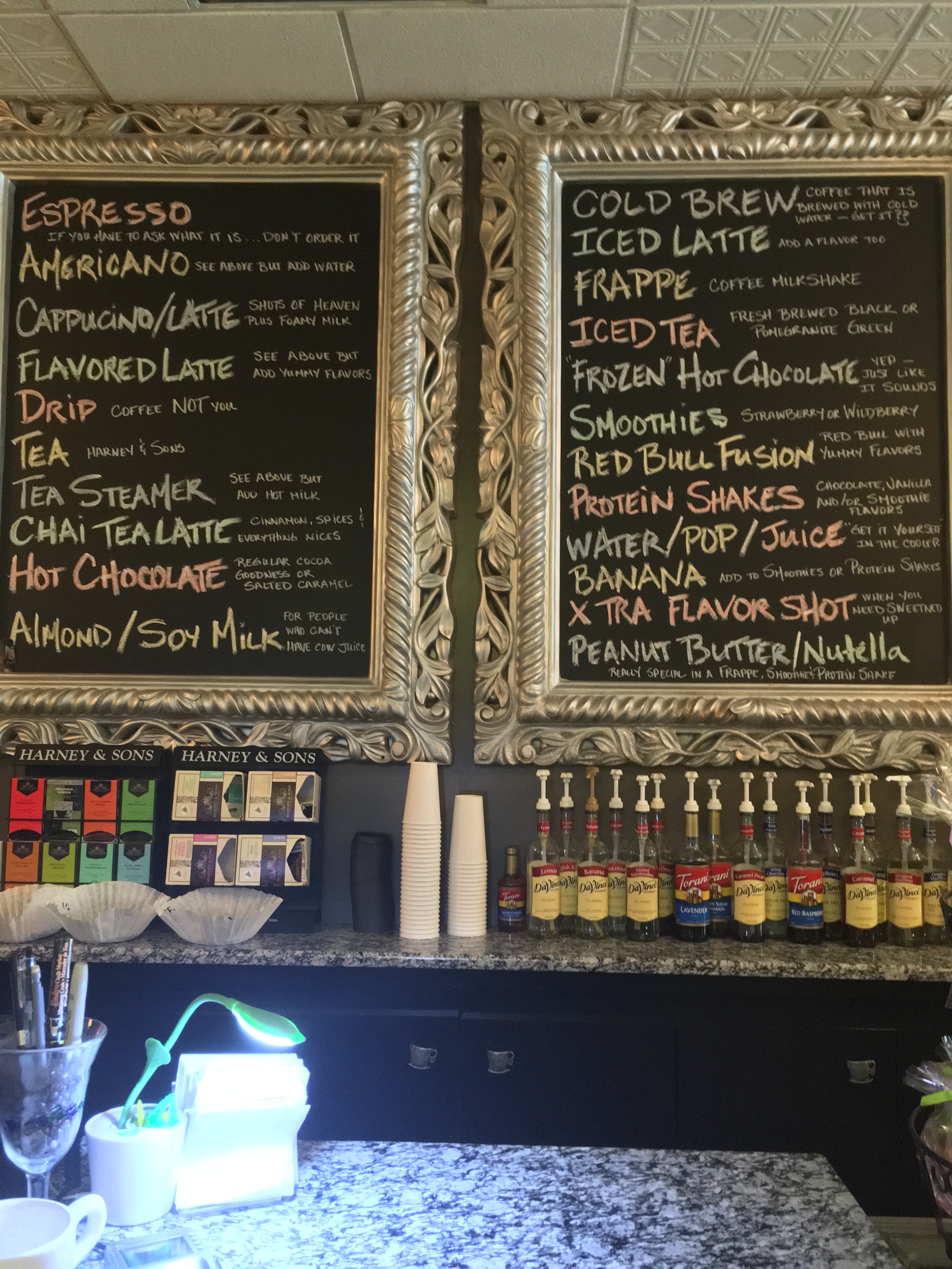 Their menu sometimes changes with the seasons as they add new flavors. They also have a specialty menu for each season with specialty drinks. They also offer great fruit smoothies. If you find yourself a little lost the barista will ask what you like in a coffee and make an in house coffee creation. The first time I went the barista made me a drink based on what I like in coffee and it was incredible.